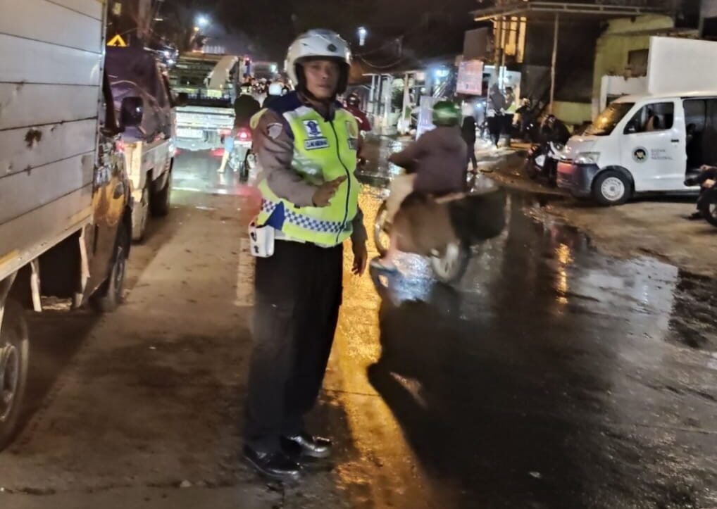 BANDUNG, 16 April 2026 – Personel Polsek Bojongsoang menunjukkan dedikasi tinggi dalam melayani masyarakat di tengah tantangan cuaca. Menghadapi genangan air yang muncul di ruas vital Jalan Terusan Bojongsoang, tepatnya di kawasan Cijagra, Desa Bojongsoang, jajaran Unit Lantas Polsek Bojongsoang turun langsung melakukan pengaturan lalu lintas pada Rabu malam (15/04).