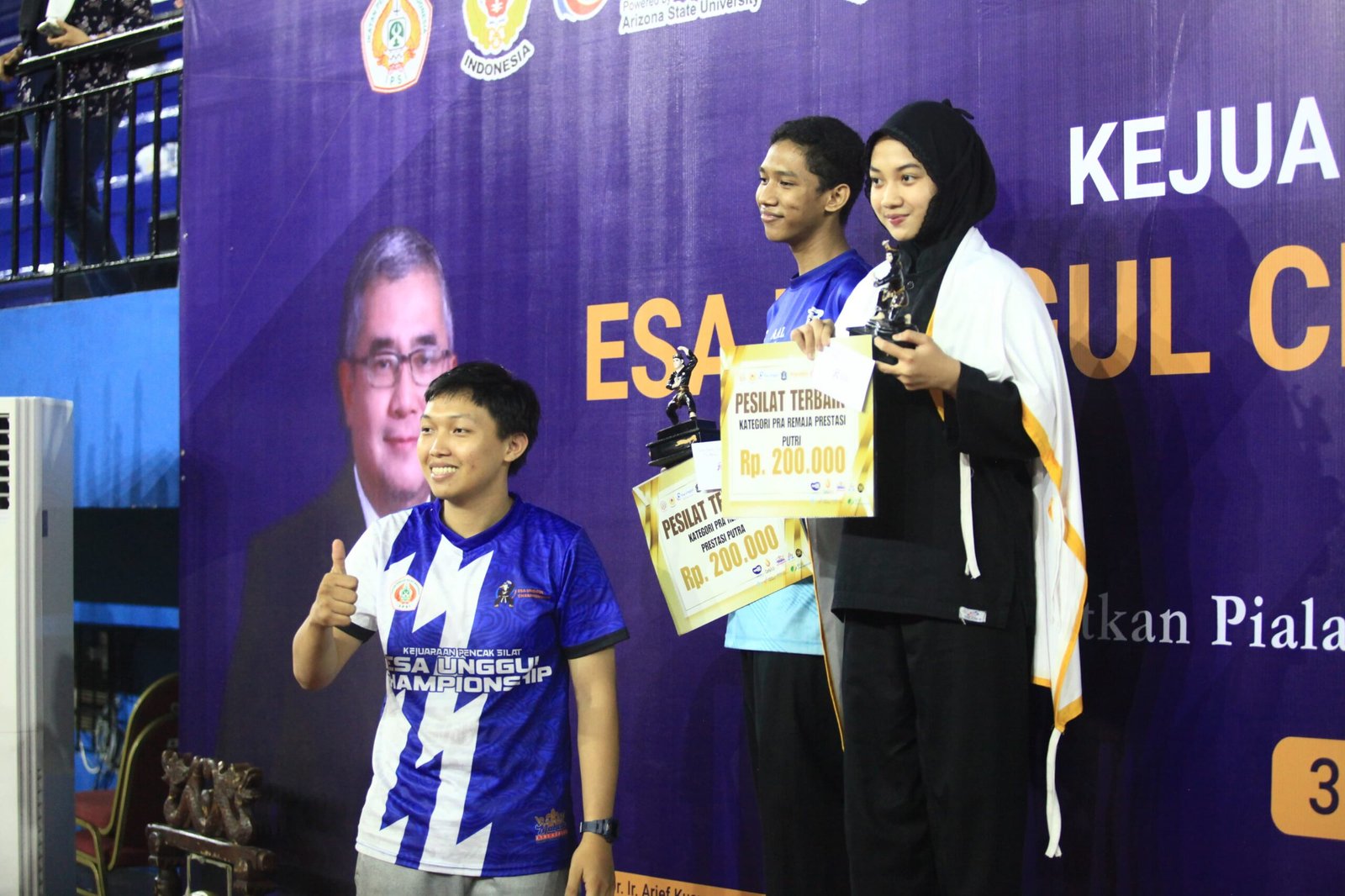 Almira adalah peserta Kejuaraan Pencak Silat Esa Unggul Championship tingkat nasional yang berhasil meraih juara satu tingkat nasional kategori remaja saat menghadapi final pada Minggu 01-02-2026 di GOR Ciracas Jakarta Timur.