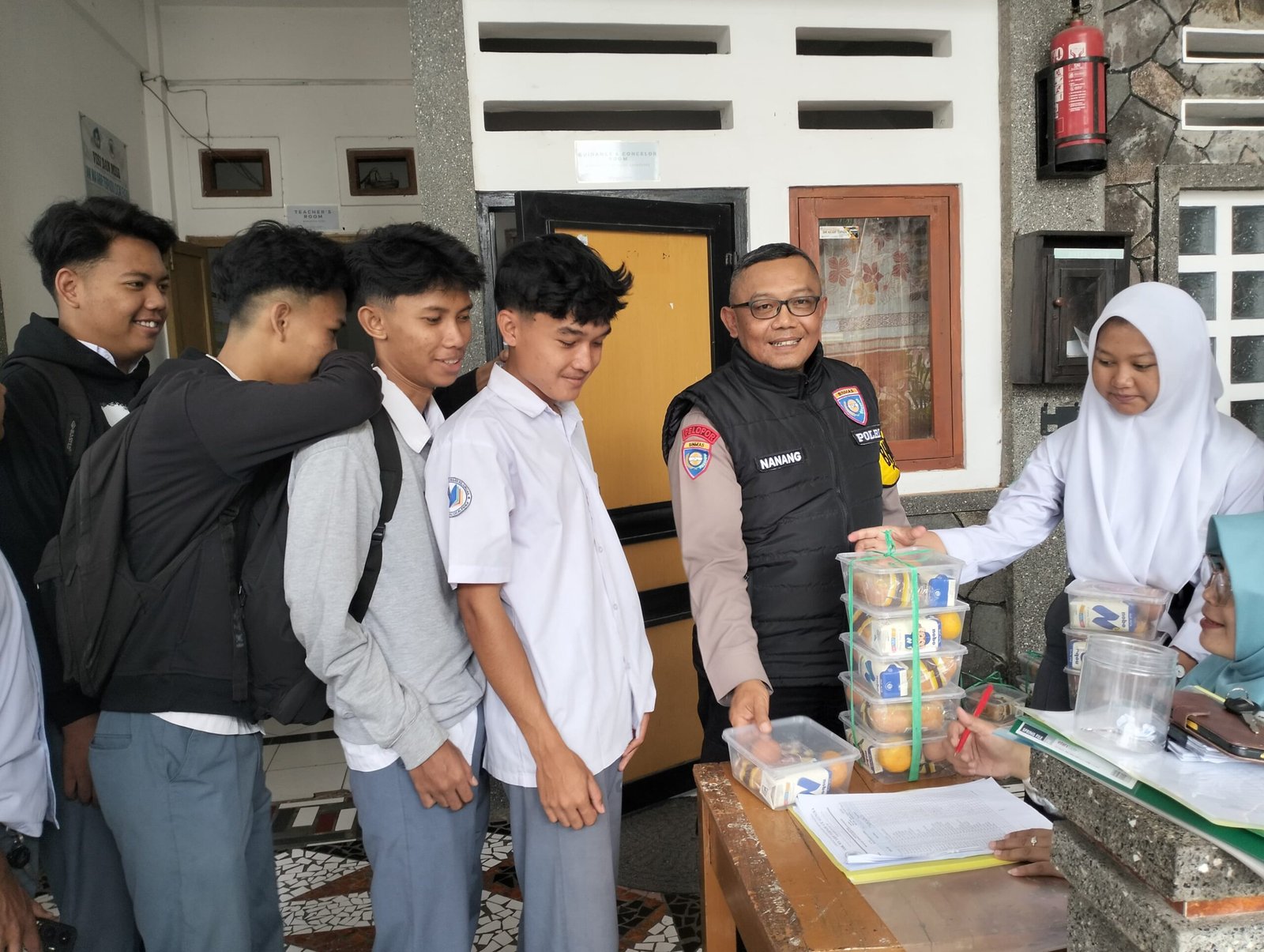 Anggota Bhabinkamtibmas Polsek Cicalengka Polresta Bandung Laksanakan Monitoring Penyaluran (MBG) Di Sekolah SMK Ma’Arif Terpadu Cicalengka