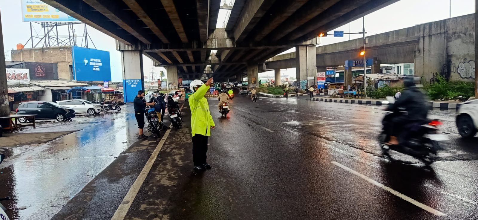 Dalam pelaksanaannya, Aiptu Awal Candra tampak sigap mengatur arus kendaraan dari berbagai arah guna memastikan lalu lintas tetap bergerak lancar. Pengaturan dilakukan secara intensif untuk menghindari penumpukan kendaraan, khususnya di area pertemuan arus dari jalur tol dan jalan arteri.