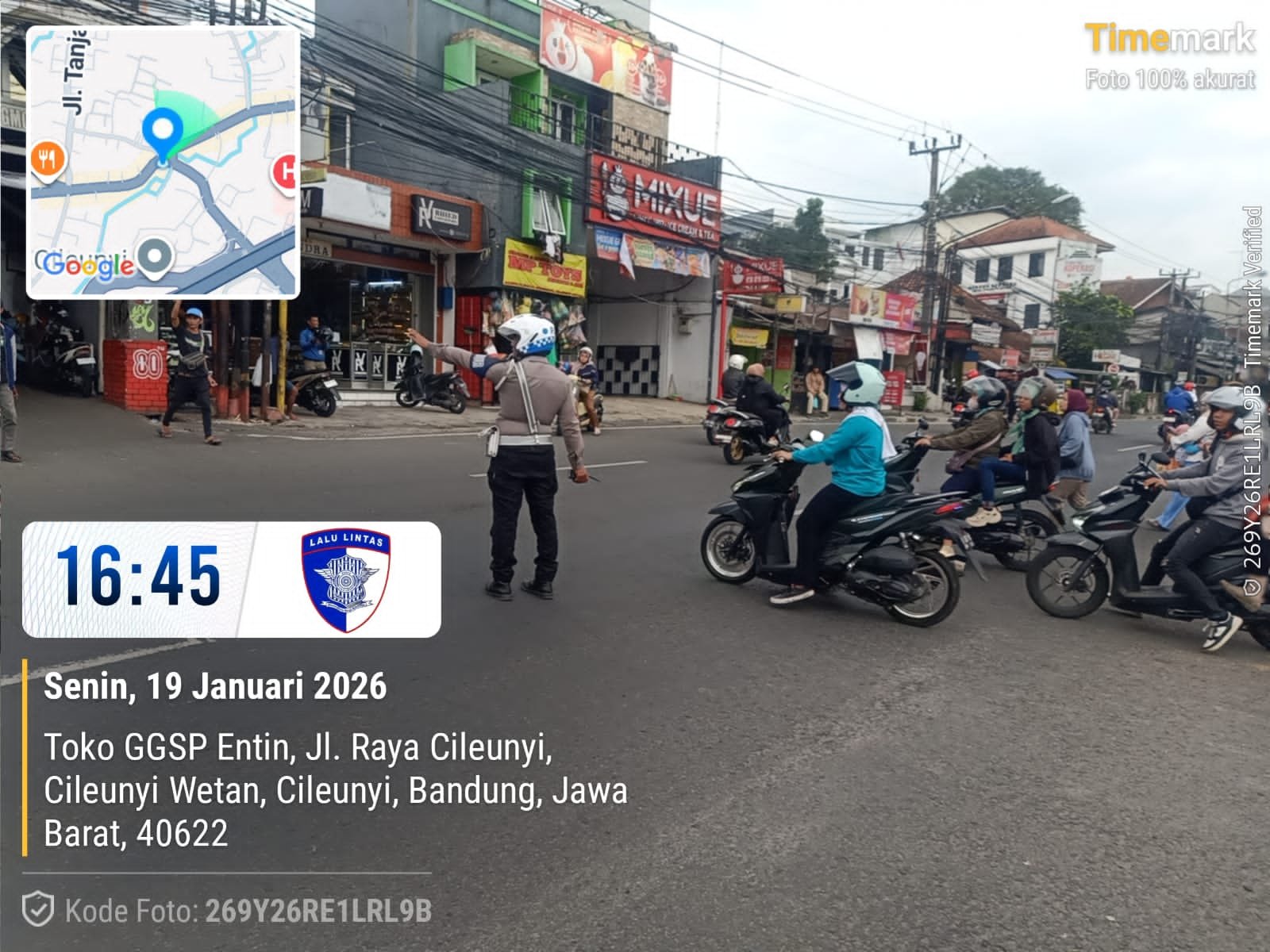 Cileunyi – Untuk mengantisipasi kepadatan arus lalu lintas pada jam pulang kerja, Anggota Unit Lalu Lintas (Lantas) Polsek Cileunyi, Polresta Bandung Aiptu Awal Candra melaksanakan pengaturan lalu lintas (gatur lalin) sore hari di Pertigaan Tugu Cileunyi, Desa Cileunyi Wetan, Kecamatan Cileunyi, Kabupaten Bandung. Senin (19/1/2026)