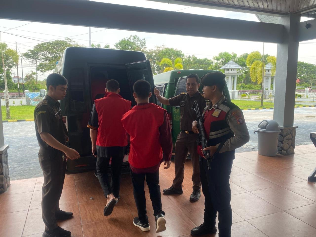 Sampit, Mata-peristiwa.id- Satsamapta Polres Kotawaringin Timur Kegiatan pengawalan Tahanan Kejasaan Negeri Seruyan dari Lapas kelas II B Sampit ke kantor Pengadilan Negeri Sampit.