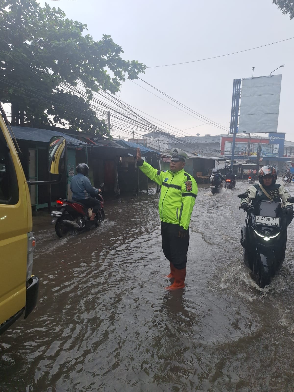 Kapolresta Bandung Kombes Pol Aldi Subartono S.H., S.I.K., M.H., CPHR melalui Kapolsek Dayeuhkolot AKP Triyono Raharja, S.I.K., M.H., menegaskan bahwa jajaran Polsek Dayeuhkolot akan terus hadir di lapangan untuk memberikan pelayanan terbaik kepada masyarakat, terutama pada titik-titik rawan genangan dan kemacetan.