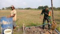Babinsa Driyorejo Kopka Andri Bantu Petani Aliri Sawah ,Wujud Nyata Dukung Ketahanan Pangan