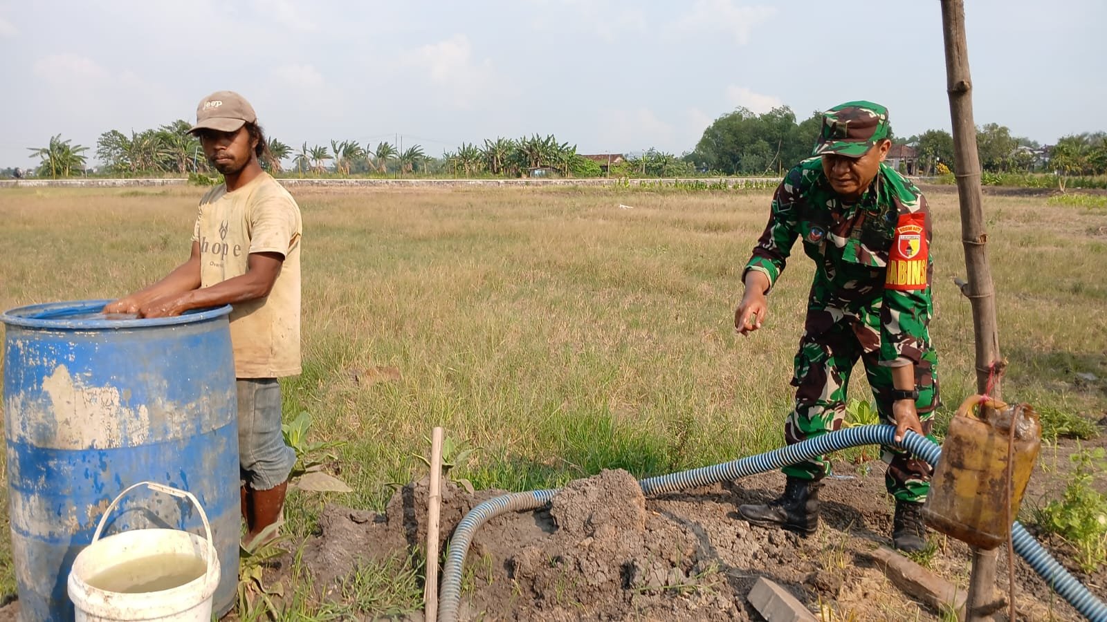 Selain membantu dalam hal teknis seperti pengairan sawah, Babinsa juga terus mendorong petani agar semangat dalam bercocok tanam serta memanfaatkan lahan pertanian secara maksimal.