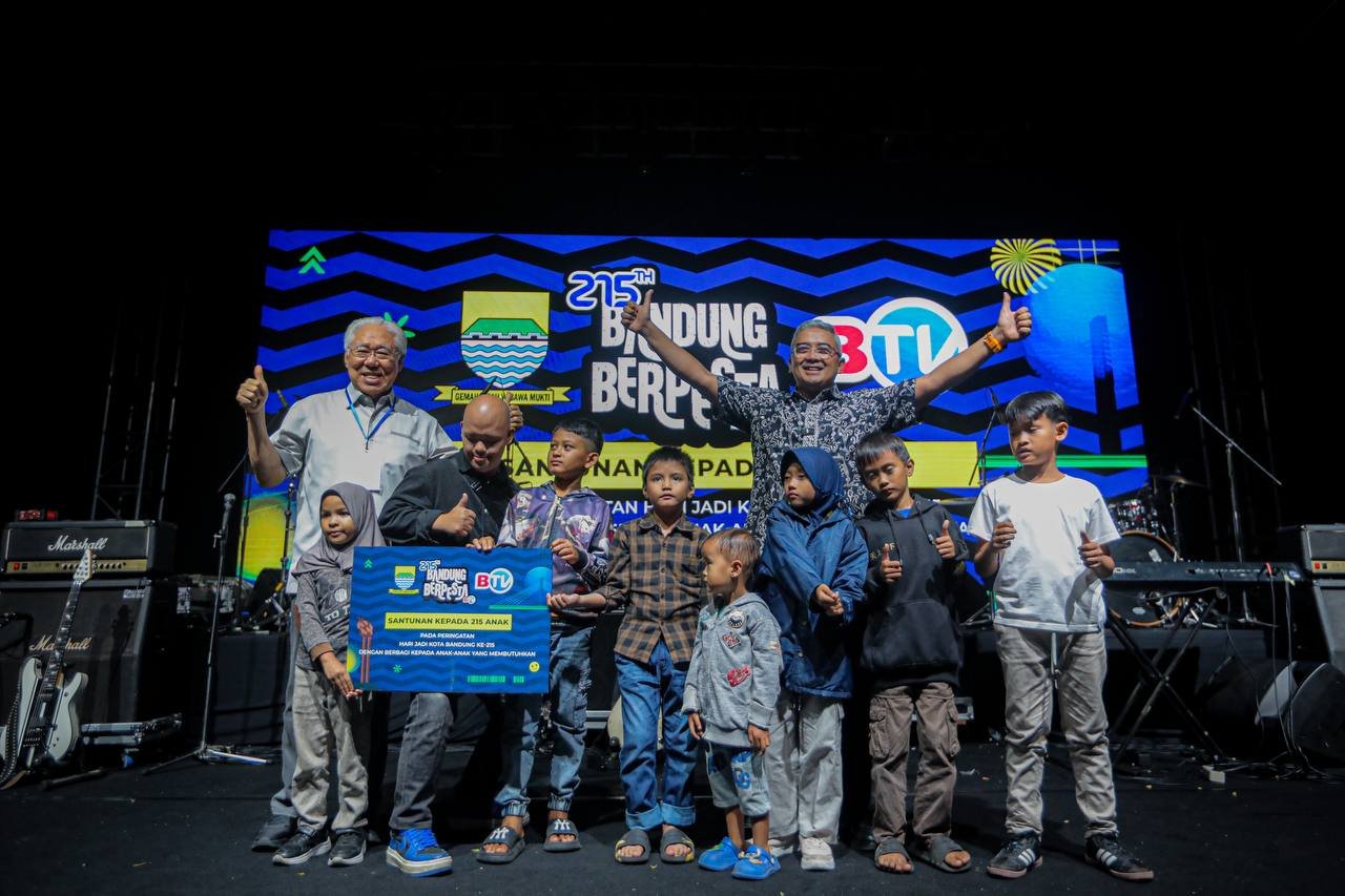 Tak hanya konser musik, Bandung Berpesta juga menjadi wadah kepedulian sosial. Malam itu, Pemkot Bandung bersama BTV menyerahkan santunan untuk 215 anak — angka yang merepresentasikan usia Kota Bandung.