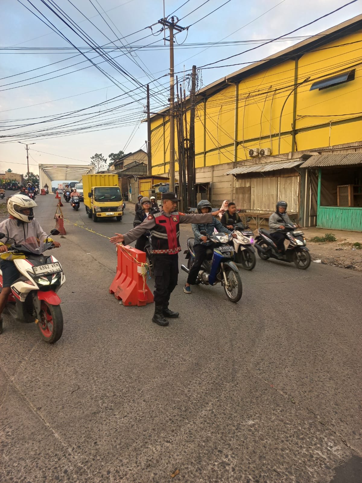 Personel Unit Samapta juga terlihat memberikan imbauan kepada pengendara agar selalu tertib dan mengutamakan keselamatan di jalan.