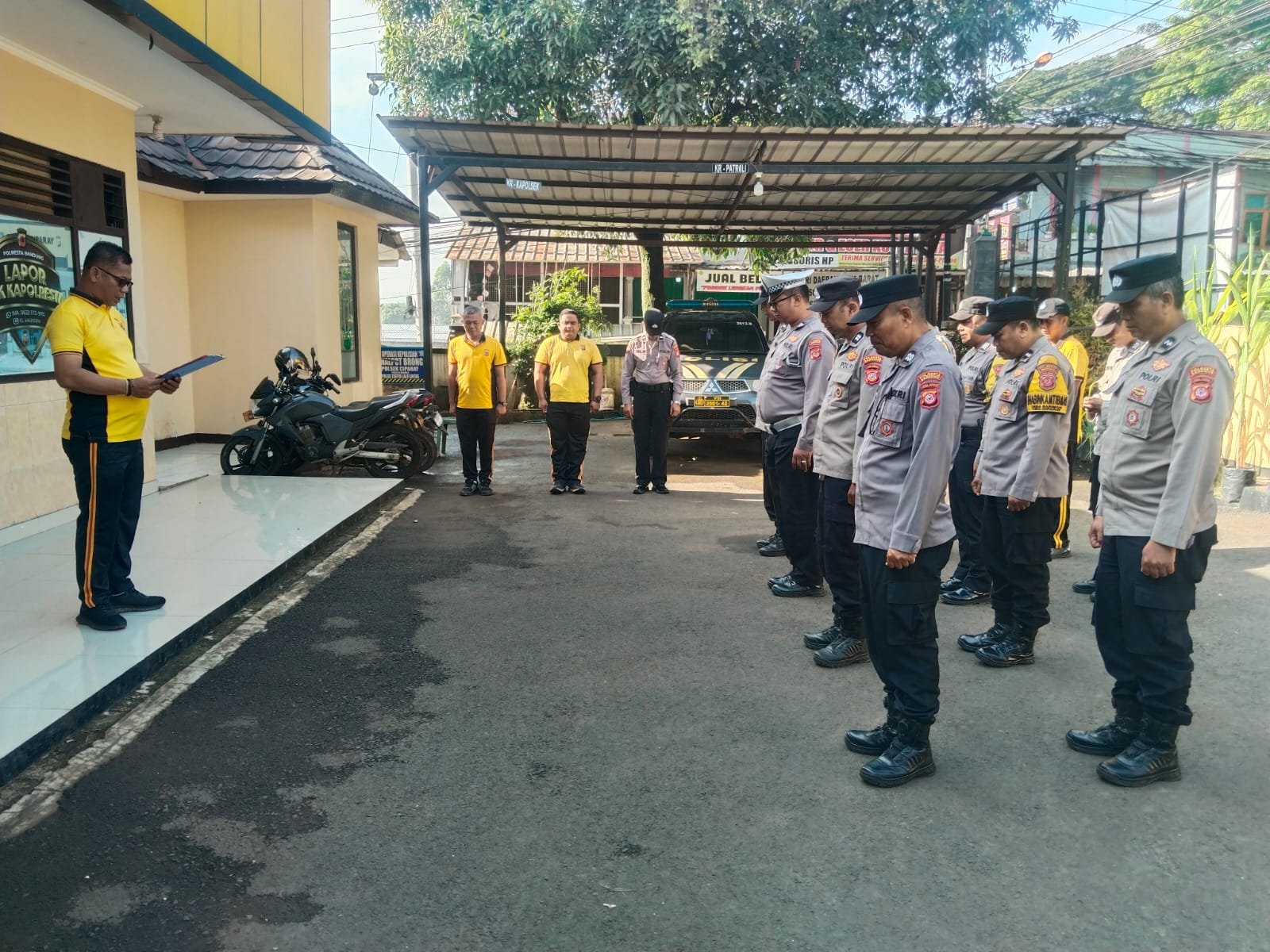 Kapolresta Bandung Kombes Pol Aldi Subartono S.H, S.I.K, M.H CPHR melalui Kapolsek Ciparay Iptu Ilmansyah S.E, M.H dalam arahannya menyampaikan Agar pedomani ASTA CITA, tidak ada anggota yang terlibat narkoba dan judi online, patroli ditingkatkan, kebersihan mako selalu diperhatikan, jaga kesehatan dan kekompakan, laksanakan tugas dengan penuh tanggung jawab, Anggota yang melaksanakan jaga bank jangan sampai terlambat, setelah selesai langsung merapat mako, seluruh anggota untuk selalu on call, jangan sampai ada gank motor yang merusak kamtibmas wilayah kita, kontrol tahanan dilakukan setiap 1 jam sekali, dilakukan oleh anggota piket secara bergantian.