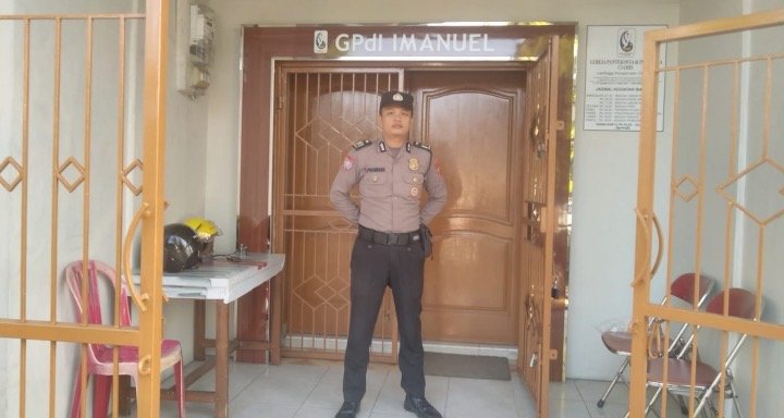 Anggota hadir untuk menjaga dan menjamin keamanan kegiatan ibadah Minggu Umat Kristiani. Pengamanan dilakukan di area sekitar Gereja agar memberikan rasa nyaman dan aman masyarakat, baik jemaat Gereja maupun warga disekitarnya.