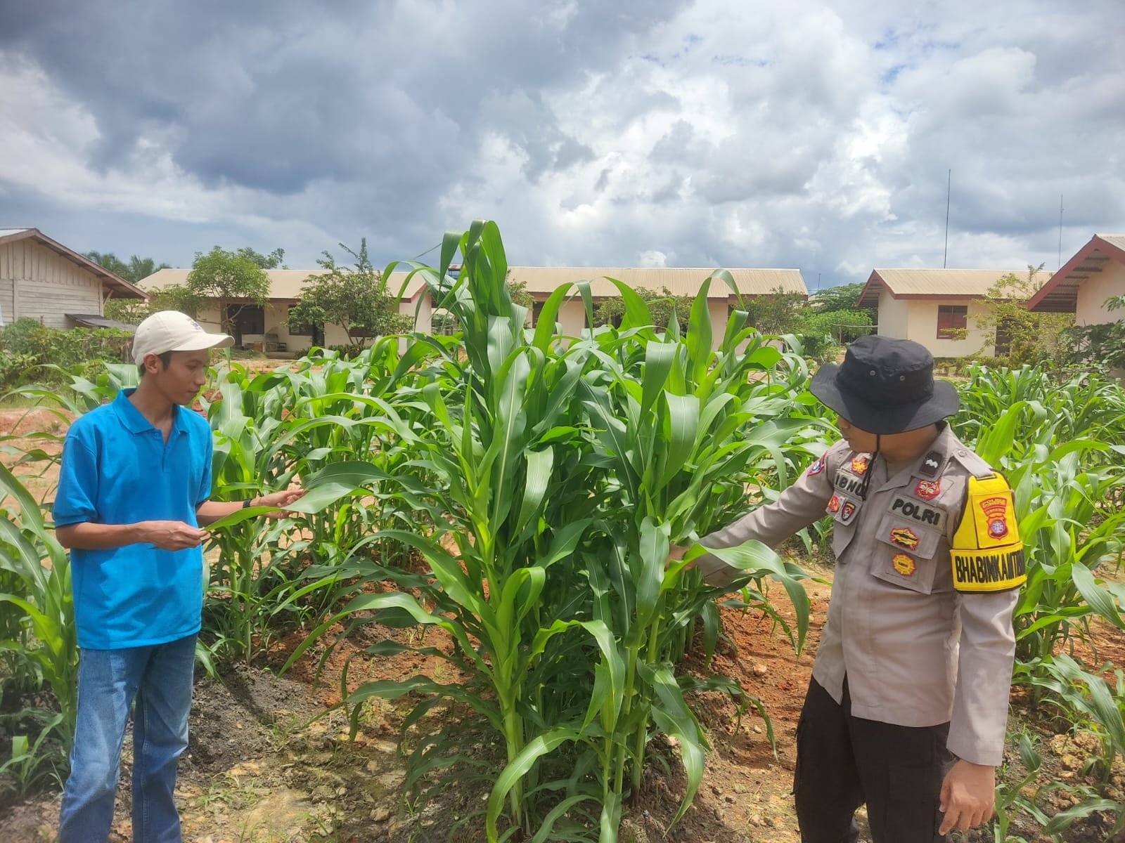 Kotim, Mata-peristiwa.id -Bhabinkamtibmas Polsek Cempaga Polres Kotim (Kotawaringin Timur) Jajaran Polda Kalteng cek pertumbuhan tanaman jagung di lahan PT. Borneo Sawit Persana Pondok 1 Estate Jemaras Desa Rubung Buyung Kec. Cempaga Kab. Kotim Prov. Kalteng, Senin (3/3/2025) pagi.