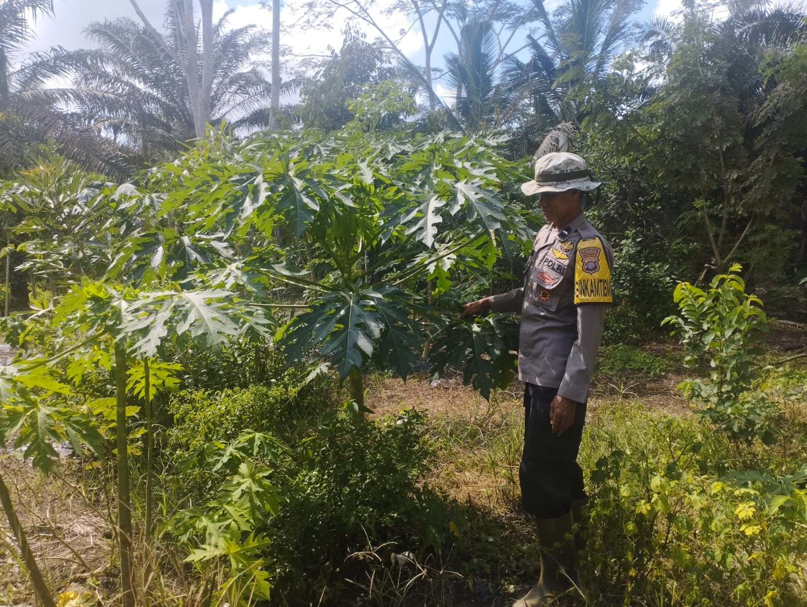 Bhabinkamtibmas Aipda Umbu Kuta Ibiriti melakukan pengecekan lahan untuk memastikan pertumbuhan dan kesuburan tanaman yang optimal sehingga bisa menjadi sumber pangan tambahan bagi masyarakat sekitar, Lahan ini menjadi bukti nyata upaya masyarakat dengan dukungan Bhabinkamtibmas Polsek Ketapang dalam mengelola sumber daya yang ada untuk memajukan ketahanan pangan lokal.