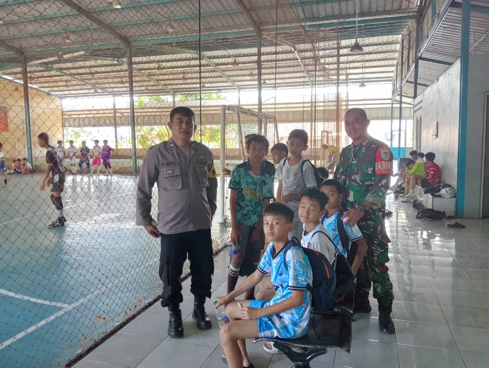 Bhabinkamtibmas Polsek Baleendah bersama Babinsa melaksanakan kegiatan sambang ke soccer mini di wilayah Malakasari, Kecamatan Baleendah, Kabupaten Bandung, dengan tujuan melakukan pencegahan Tindak Pidana Perlindungan Anak (TPPA).