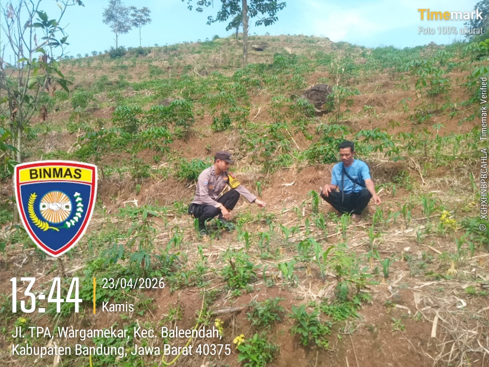 Baleendah – (24/04/2026) Dalam rangka mendukung program ketahanan pangan, Bhabinkamtibmas Polsek Baleendah melaksanakan pengecekan pertumbuhan tanaman jagung di Kampung Panyaweuan, Kelurahan Wargamekar, Kecamatan Baleendah, Kabupaten Bandung.