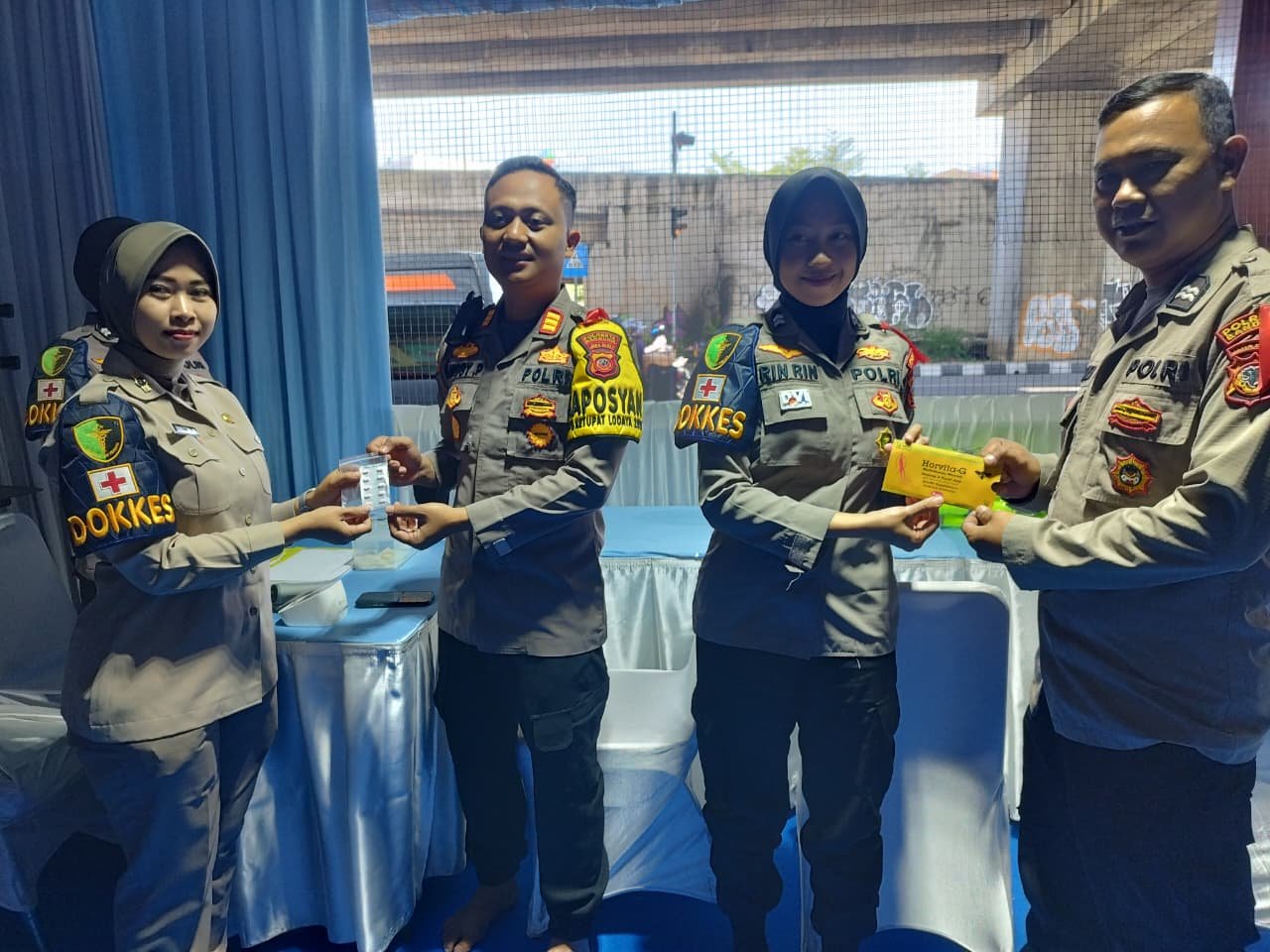 Selain melakukan pemeriksaan kesehatan, tim medis juga memberikan obat-obatan serta vitamin kepada para anggota agar kondisi tubuh tetap terjaga selama menjalankan tugas pengamanan.