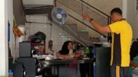 Dalam Menciptakan Kondusifitas : Bhabinkamtibmas Desa Talun Polsek Ibun Polresta Bandung Datangi Warung Angkringan