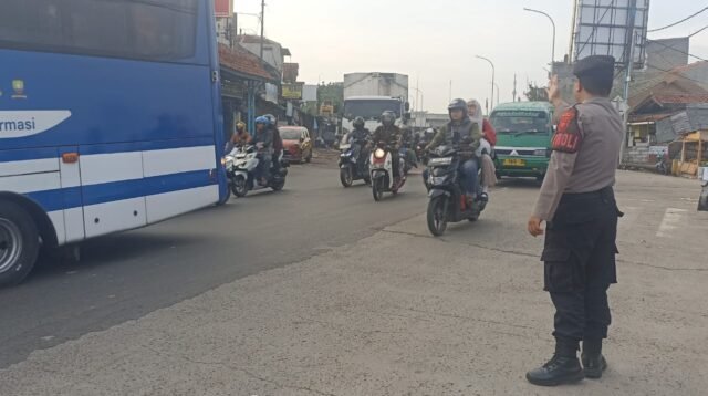 Personil Unit Samapta Polsek Cileunyi Turun ke Jalan, Urai Kepadatan Pagi di Depan Pasar Sehat