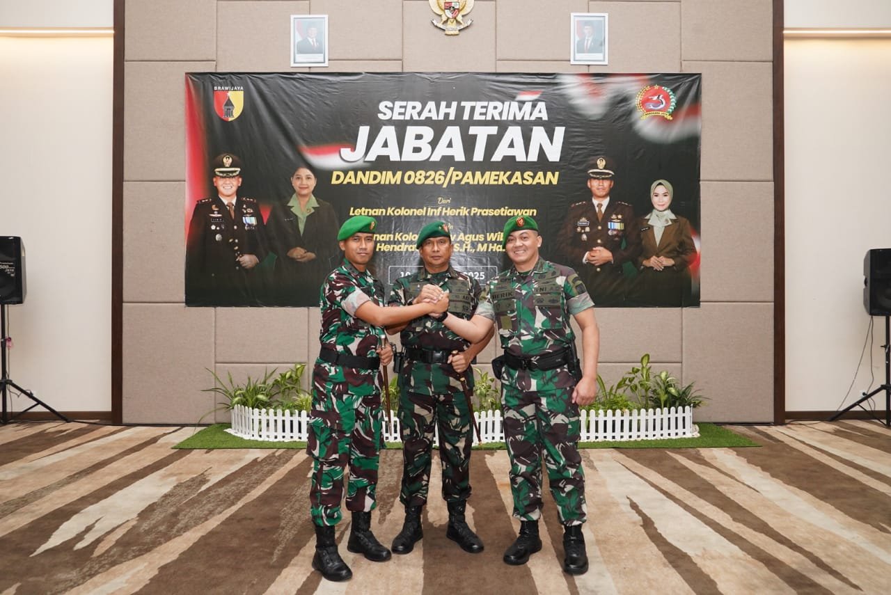 PAMEKASAN, mataperistiwa id – Tongkat komando Distrik Militer (Kodim) 0826/Pamekasan resmi berpindah tangan dalam sebuah upacara serah terima jabatan (sertijab) yang dipimpin langsung oleh Komandan Korem (Danrem) 084/Bhaskara Jaya, Brigjen TNI Danny Alkadrie. Letkol Kav Agus Wibowo Hendratmoko, S.H., M.Han., kini resmi menjabat sebagai Komandan Kodim (Dandim) 0826/Pamekasan, menggantikan Letkol Inf Herik Prasetiawan. Acara khidmat ini berlangsung pada Jumat, 10 Oktober 2025.