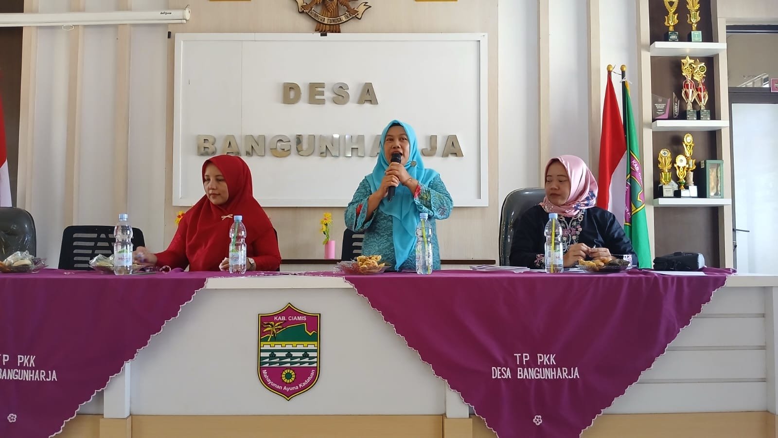 Kegiatan tersebut dilaksanakan oleh Anggota Bhabinkamtibmas Desa Bangunharja Polsek Cisaga Polres Ciamis Polda Jabar. Saat itu anggota melakukan koordinasi dan komunikasi bersama Ibu Ibu PKK mengenai situasi kamtibmas saat ini di masyarakat.