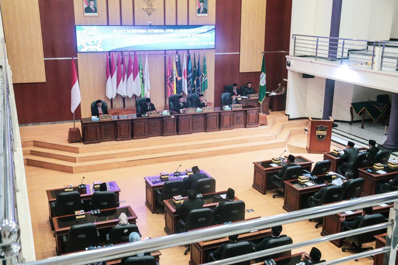 Dalam sambutannya, Bupati Ciamis menyampaikan bahwa rapat paripurna tersebut merupakan bagian penting dari siklus tata kelola pemerintahan daerah, khususnya dalam memperkuat fungsi pengawasan DPRD terhadap jalannya pemerintahan.