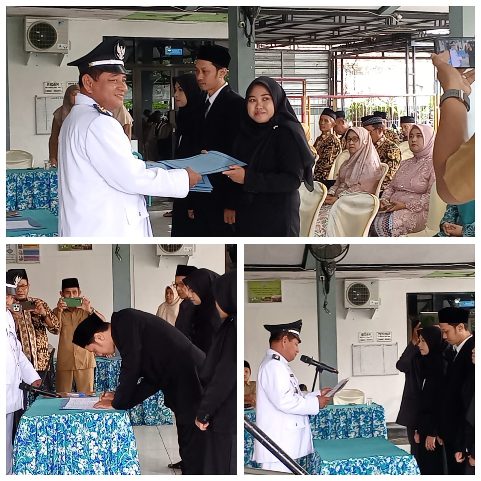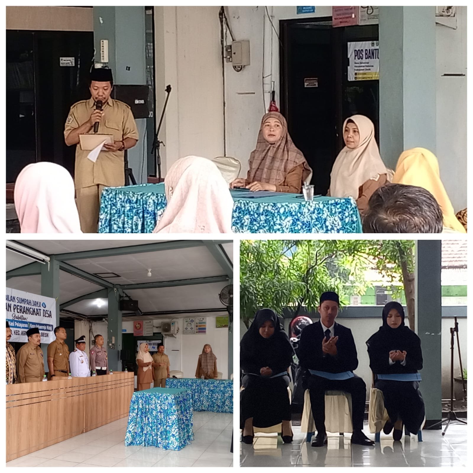 Camat Kebomas dan Kepala Dinas PMD berikan sekelumit kata dan nasehat serta motivasi bagi 3 Perangkat Baru Desa Dahanrejo.