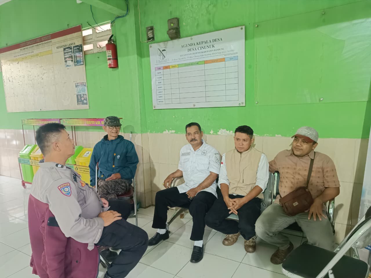 Bhabinkamtibmas Desa Cinunuk, Polsek Cileunyi, Polresta Bandung, Aiptu Heri Maryadi, melaksanakan dialog kamtibmas bersama Pejabat (Pj) Kepala Desa Pandanwangi, Bapak Rosyid, bertempat di Kantor Desa Cinunuk, Kecamatan Cileunyi, Kabupaten Bandung.