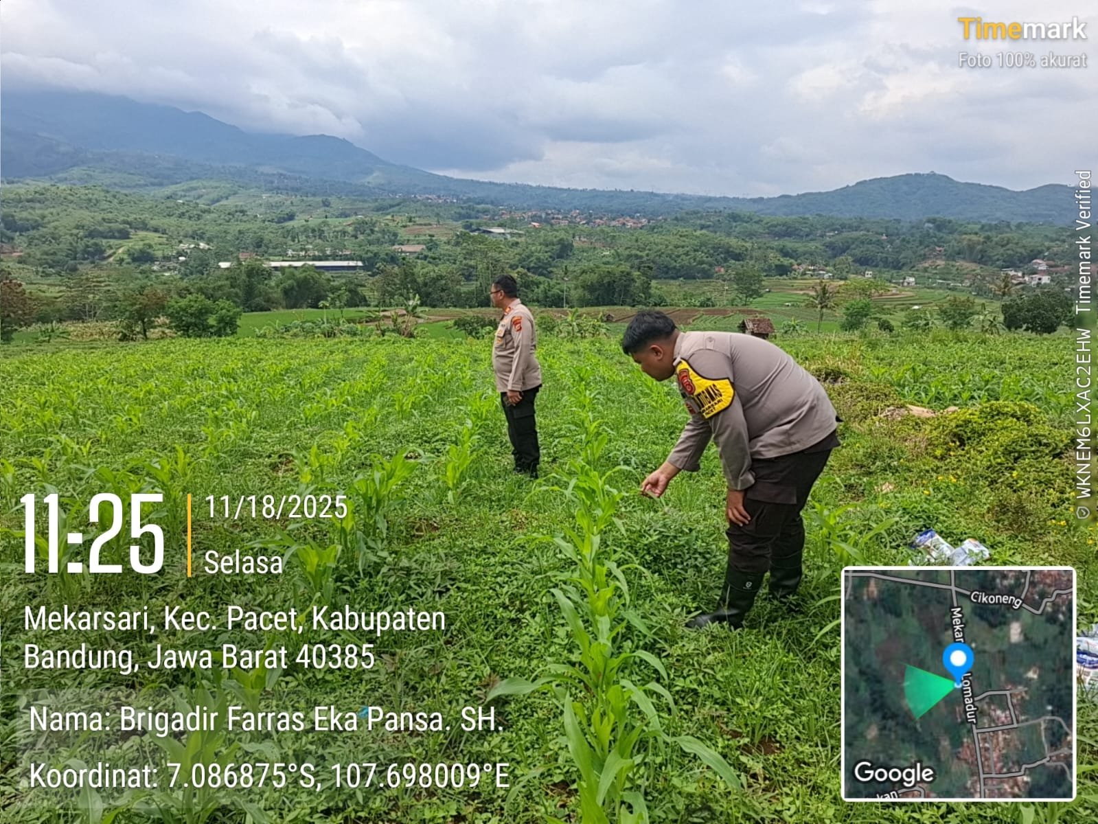 Polresta Bandung – Implementasikan Pdigram Astacita yang dicanangkan Presiden Republik Indonesia bidang ketahanan pangan, Anggota Bhabinkamtibmas Desa Mekarsari Polsek Pacet Polresta Bandung Brigadir Farras Eka Pansa S.H Sambangi lahan jagung yang ada di wilayah Desa Mekarsari, Kecamatan Pacet, Kabupaten Bandung. Selasa, 18 November 2025.