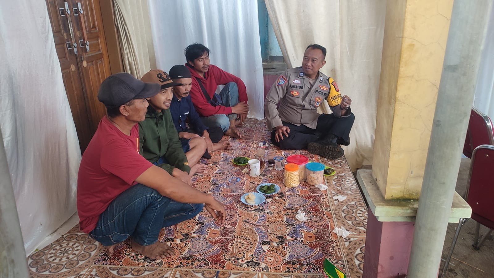 Dalam suasana yang penuh kekeluargaan, Aiptu Ahmad Muhtar tampak berbaur dan duduk bersama warga yang sedang menggelar hajatan. Momen tersebut dimanfaatkan untuk menjalin silaturahmi sekaligus menyampaikan himbauan keamanan dan ketertiban masyarakat (kamtibmas) secara santai dan mudah dipahami.