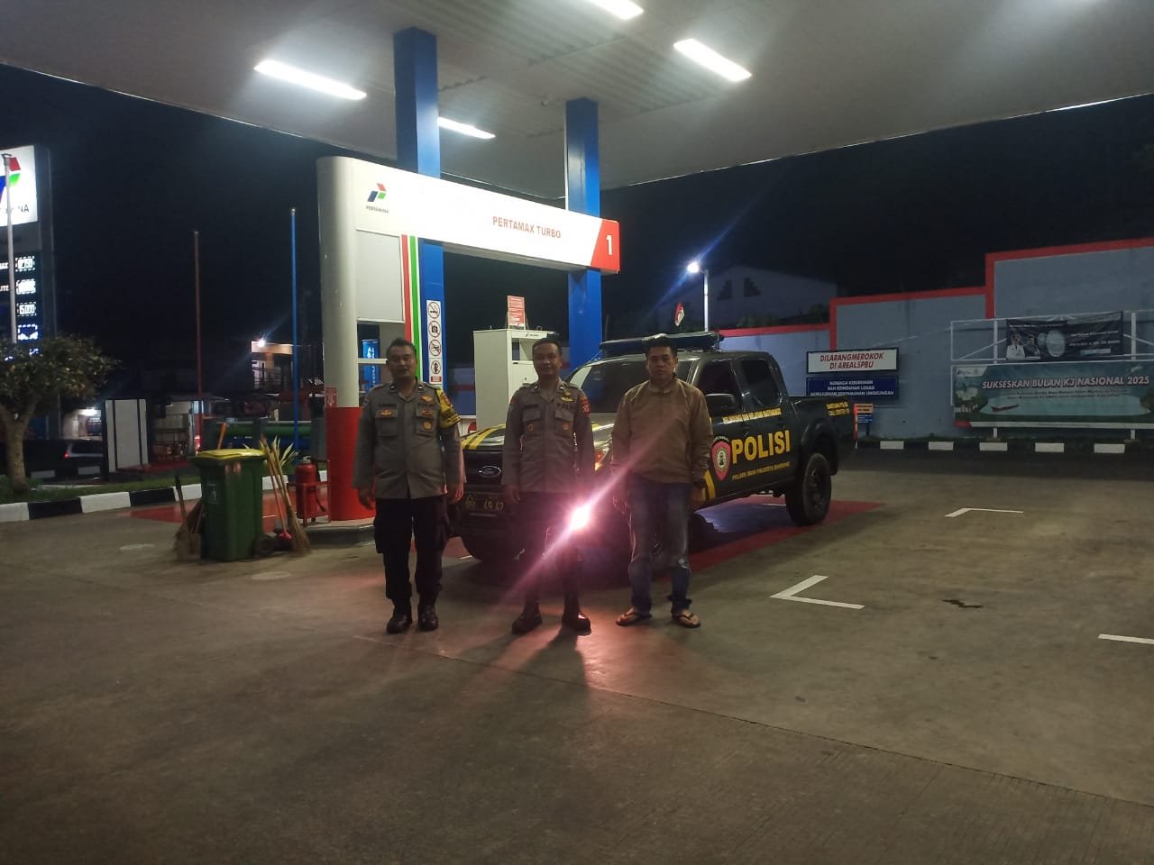 Polresta Bandung, – Anggota Polsek Ibun, Polresta Bandung Polda Jabar mendatangi SPBU Pertamina, Kecamatan Ibun, Kabupaten Bandung, Kegiatan tersebut dalam rangka cipta kondisi melalui sambang kamtibmas sebagai wujudkan kondusifitas wilayah binaan pada malam hari. Jumat, 26 Desember 2025, malam