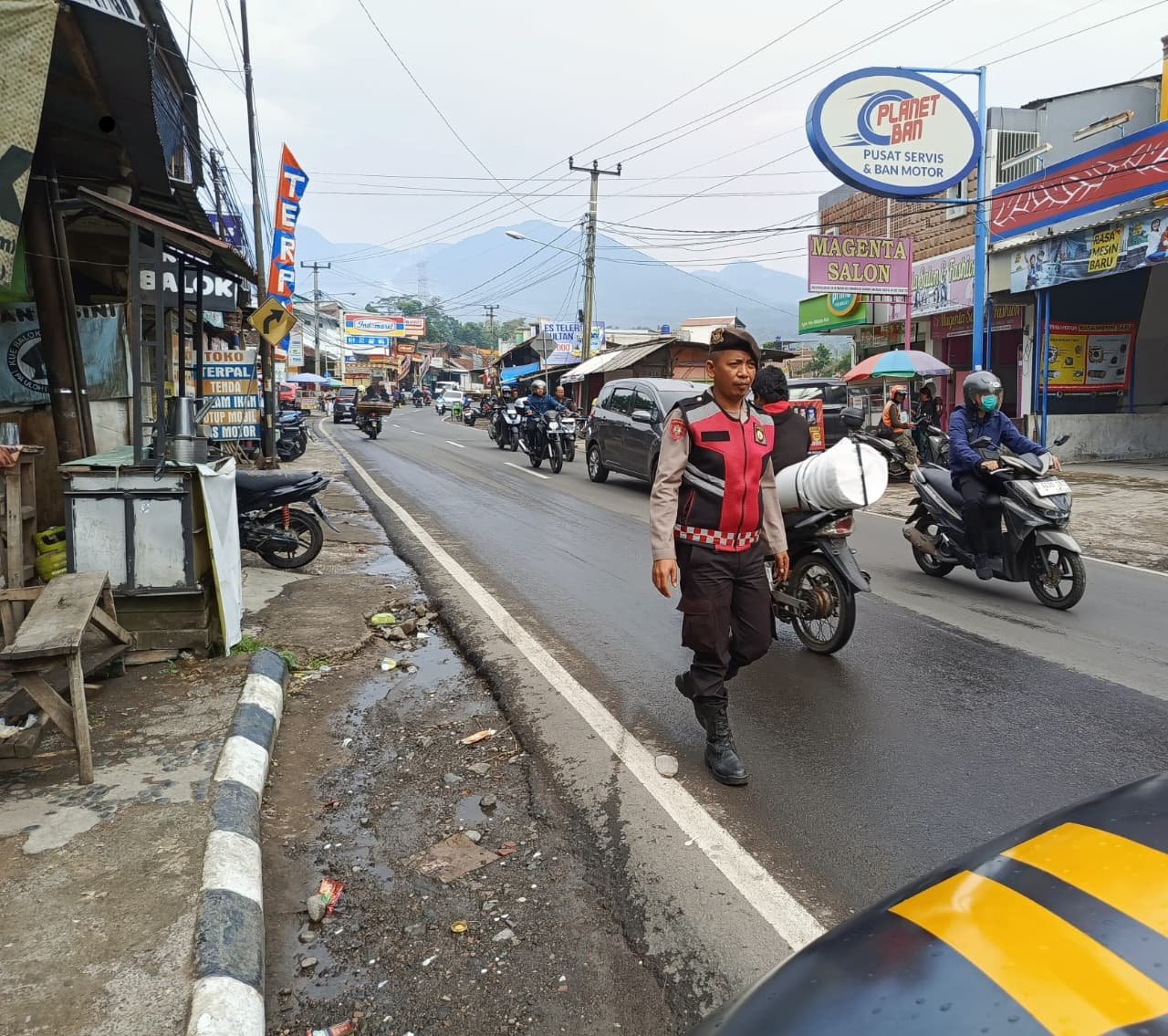 Jamin Kelancaran Pagi : Anggota Unit Samapta Polsek Cimaung Laksanakan Gatur Lalu Lintas