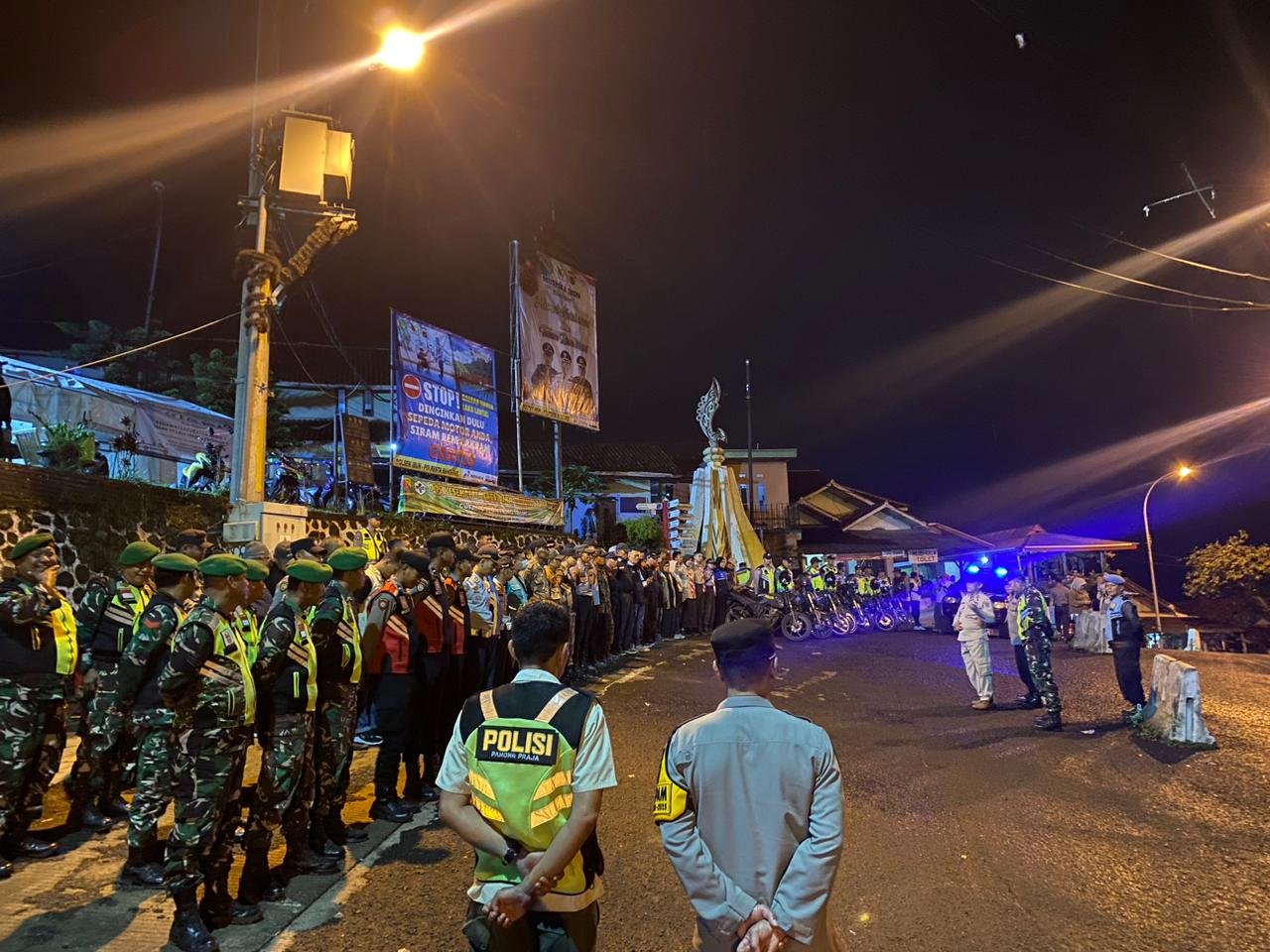 Polresta Bandung, // Dalam rangka meningkatkan kesiapsiagaan pengamanan menjelang malam pergantian Tahun Baru 2026, Petugas Pos Pengamanan Ops Lilin Lodaya 2025 bersama unsur Forkopimcam menggelar apel gabungan siaga di depan Pos Pam Cukang Monteng Kecamatan Ibun, Kabupaten Bandung. Rabu, 31 Desember 2025.
