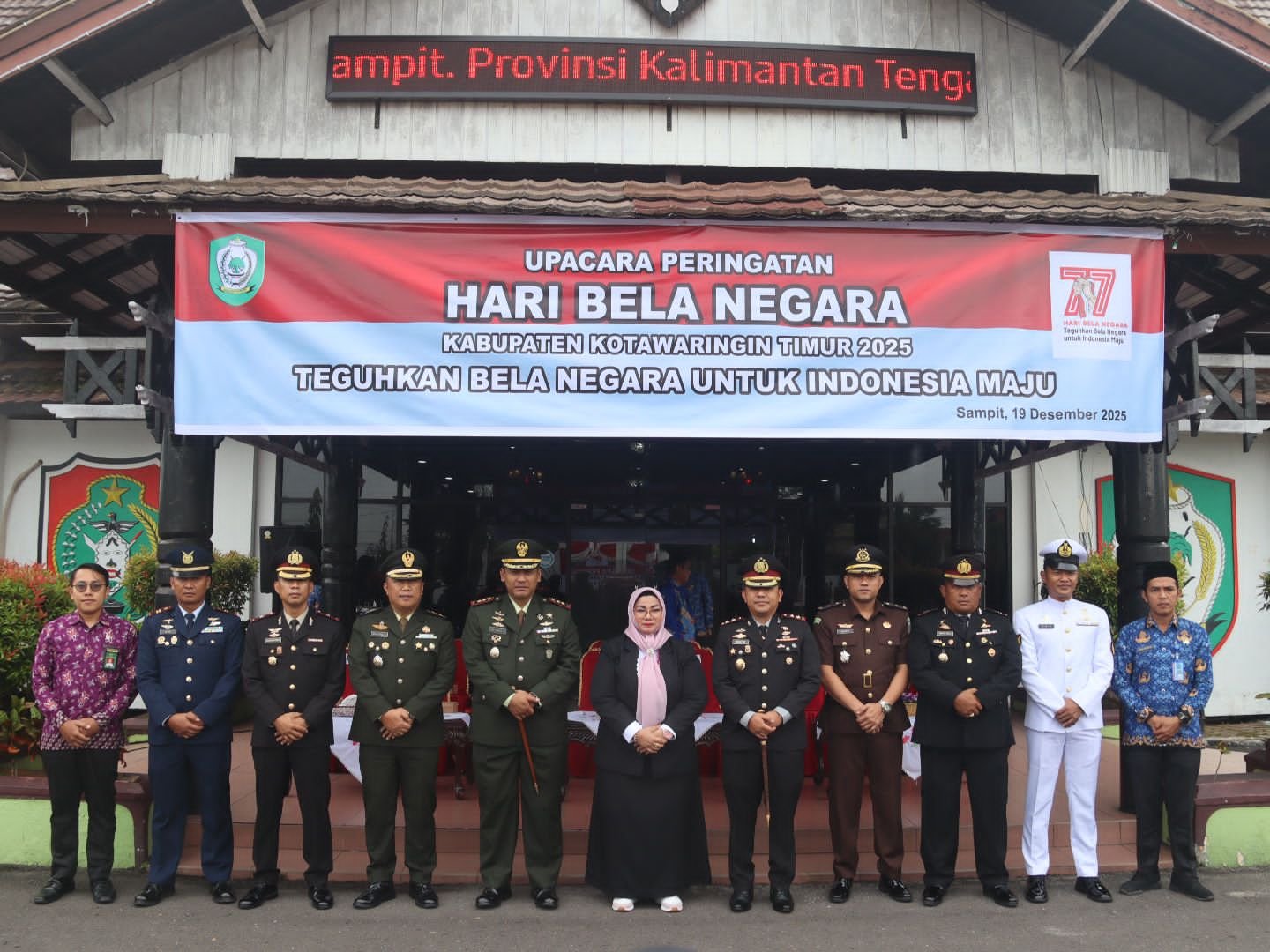 Sampit, Mata-peristiwa.id – Polres Kotim menghadiri upacara peringatan Hari Bela Negara ke-77 tahun 2025 di halaman Pemda Kotim Kotim dengan tema” Teguhkan Bela Negara Untuk Indonesia Maju”. Sebagai Inspektur upacara Wakil Bupati Kotim Hj Irawati S.pd. yang dihadiri oleh Kapolres Kotim AKBP Resky Maulana Zulkarnain, S.H.,S.l.K.,M.H. beserta Forkopimda, dengan peserta upacara personel TNI, Polri, BPBD, Damkar dan ASN Pemda Kotim, Jumat pagi (19/12/2025).