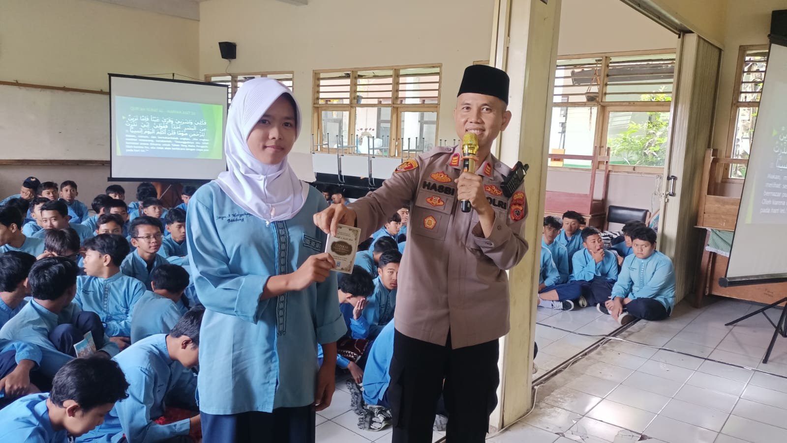 Di hadapan para siswa dan siswi SMPN 3 Margahayu, Kapolsek Margahayu menyampaikan materi terkait makna dan hikmah bulan suci Ramadan, sekaligus mengajak para pelajar untuk memanfaatkan momentum Ramadan dengan meningkatkan keimanan, kedisiplinan, serta perilaku positif baik di lingkungan sekolah maupun di masyarakat.