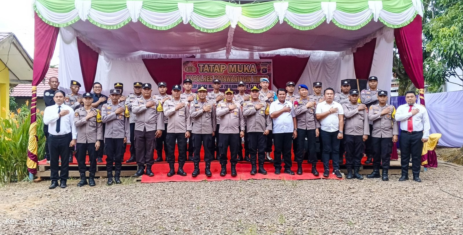 Sampit, Mata-peristiwa.id- Kapolres Kotawaringin Timur AKBP Resky Maulana Zukarnain,S.H.,S.I.K.,M.H. melaksanakan Kegiatan Tatap Muka beserta Pejabat Utama Polres Kotim dan Ketua Bhayangkari Cab. Kotim Ny Sentomoy Resky dengan Forkopinmcam, Tokoh-tokoh Kec. Antang Kalang dan Kec. Telaga Antang Di Polsek Antang Kalang .Senin siang ( 15/12/25).
