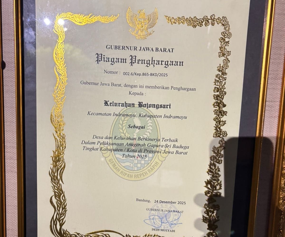 Indramayu,mataperistiwa.id -Kelurahan Bojongsari kecamatan Indramayu menorehkan prestasi membanggakan dengan menerima Penghargaan Gapura Sri Baduga dari Gubernur Jawa Barat dalam ajang Gapura Sri Baduga tingkat Kabupaten / Kota di Provinsi Jawa Barat
