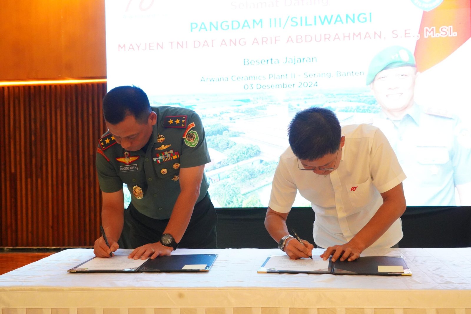 PT. Arwana yang merupakan kepanjangan dari Arab, Jawa, China sebagai representasi pendiri perusahaan memberikan hibah keramik kepada Kodam III/Slw. Hal itu ditandai dengan penandatanganan MOU antara CEO PT. Arwana Citramulia Tbk dengan Pangdam III/Slw.