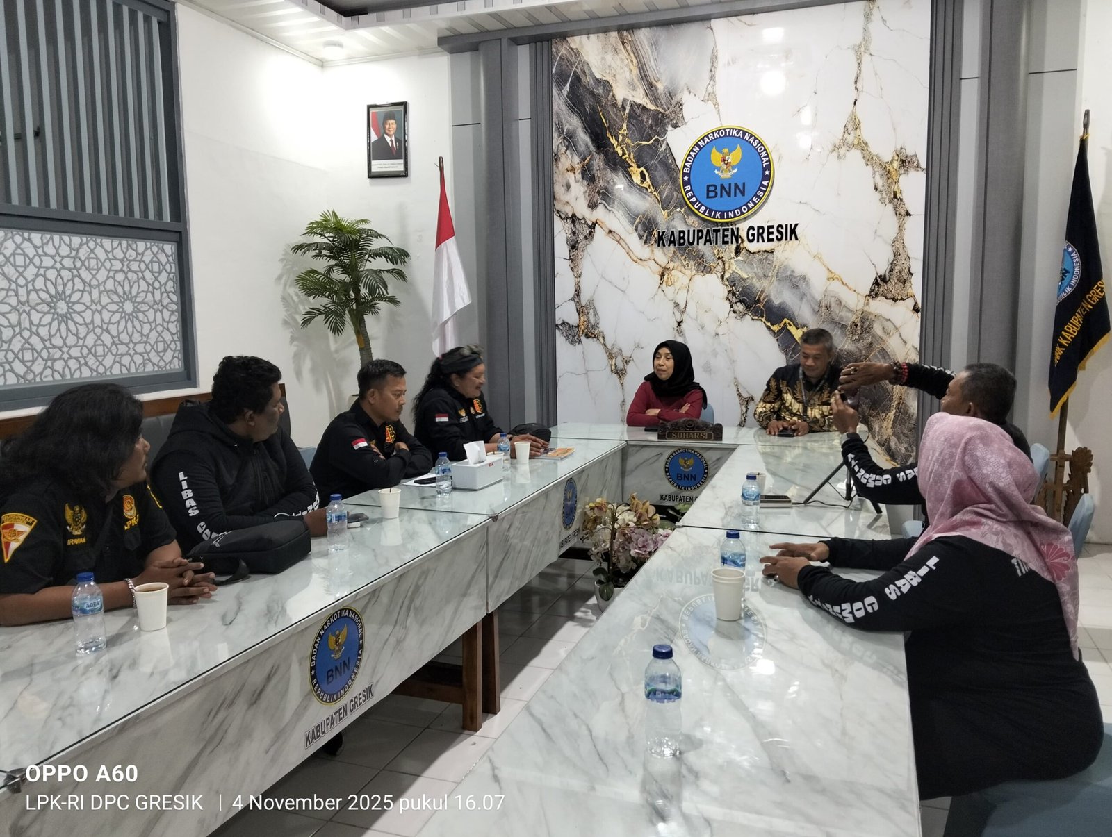 Audiensi tersebut turut dihadiri oleh Ketua LPK-RI DPC Kabupaten Gresik, Gus Aulia, SE., S.H., M.M., M.Ph, Kabag BNNK Gresik Basuki, serta Waka LPK-RI Kabupaten Gresik Suyanto. Pertemuan ini menjadi langkah awal memperkuat sinergi antara lembaga masyarakat dan instansi pemerintah dalam mendukung program nasional “Gresik Bersinar” (Bersih dari Narkoba).