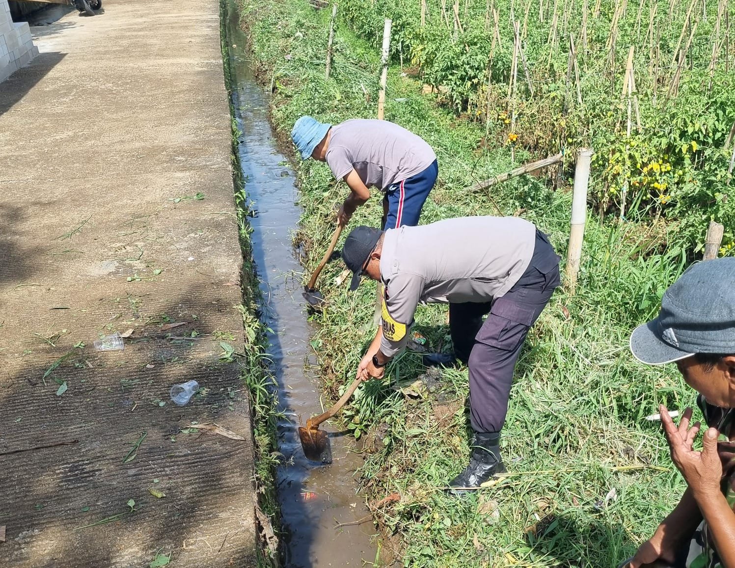 Kerja bakti dilakukan guna memastikan aliran air tetap lancar sehingga mampu mengairi lahan pertanian dengan optimal, sekaligus mencegah tersumbatnya saluran akibat daun, sampah, maupun sedimentasi tanah. Aipda Dian turut terjun langsung bersama para petani membersihkan rumput liar dan endapan lumpur yang menghambat jalannya air.