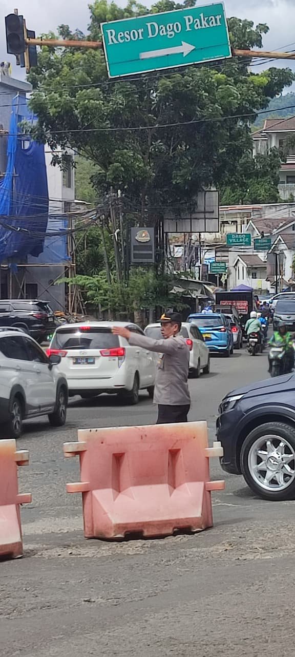 Seperti yang terlihat sejumlah personel gabungan melakukan pengaturan lalu lintas, serta pemantauan arus kendaraan yang melintas melewati Jalur obyek Wisata dago pakar. Minggu, 28 Desember 2025.