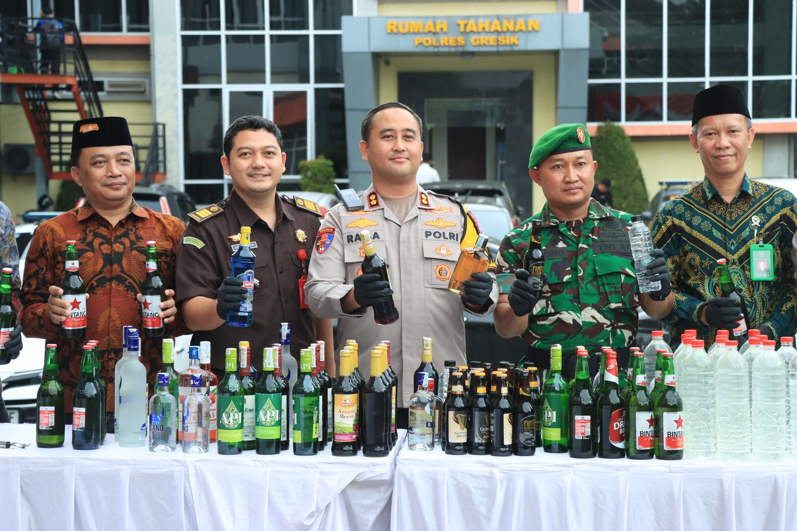 “Pemusnahan ini dilakukan secara simbolis bersama jajaran Muspida dan tokoh agama sebagai tanda bahwa tidak ada ruang bagi peredaran miras ilegal di Gresik,” tegasnya.