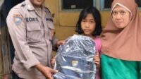 Anggota Unit Binmas Polsek Cicalengka Kembali Salurkan Bantuan Tas Untuk Anak Sekolah Di Wilayah Binaan