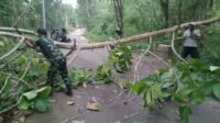 Babinsa Koramil 0829-16/Sepulu bersama warga bersihkan pohon tumbang akibat angin kencang