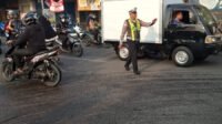 Minimalkan Kemacetan dan Laka Lantas, Personil Unit Lantas Polsek Dayeuhkolot Laksanakan Pengaturan Pagi Hari