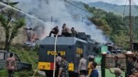 Personel Polri dan TNI Bahu Membahu Padamkan Api di Kompleks Kodam Lama Jayapura