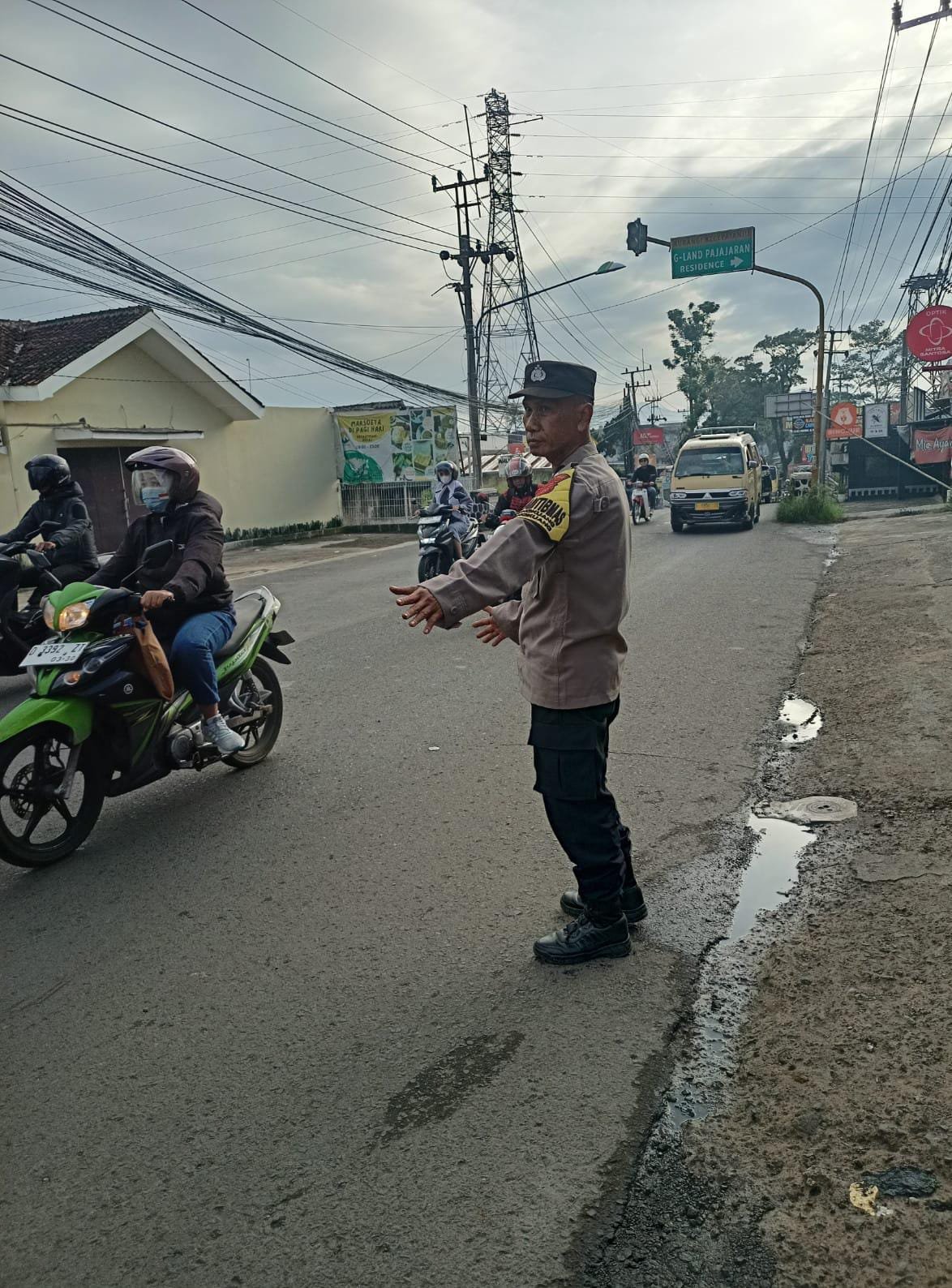 Polsek Cangkuang Polresta Bandung menempatkan personel piket fungsi di sejumlah titik strong point yang rawan terjadi kepadatan arus lalu lintas di wilayah hukum Polsek Cangkuang. Rabu (31/12/2025)