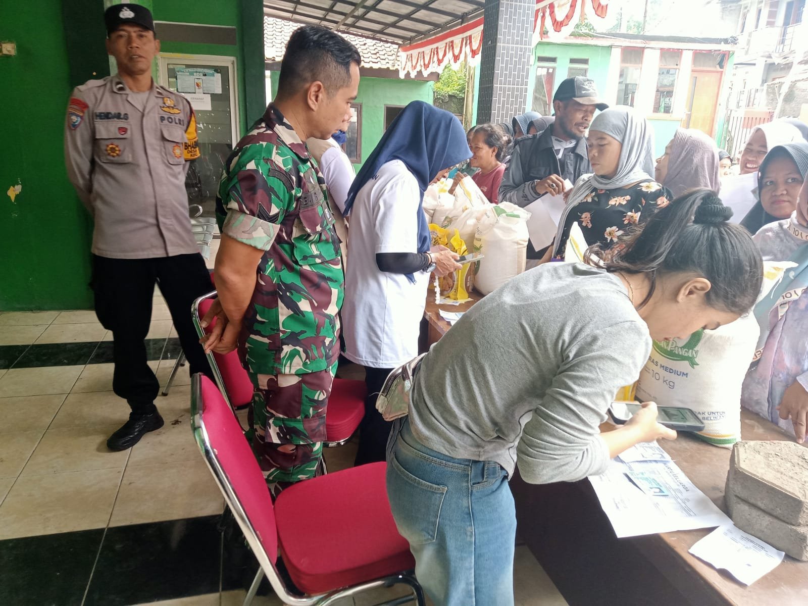 Aipda Hendar Gunawan bersama Babinsa turut berjaga di area pembagian untuk memastikan antrean berjalan teratur dan kondusif. Keduanya juga berinteraksi langsung dengan warga sembari memberikan imbauan mengenai pentingnya menjaga keamanan lingkungan dan ketertiban saat menerima bantuan.