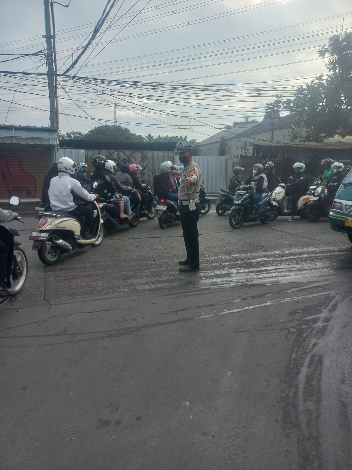 Selain melakukan pengaturan lalu lintas, petugas juga memberikan imbauan kepada pengendara agar selalu tertib, berhati-hati, serta mematuhi rambu-rambu demi keselamatan bersama.