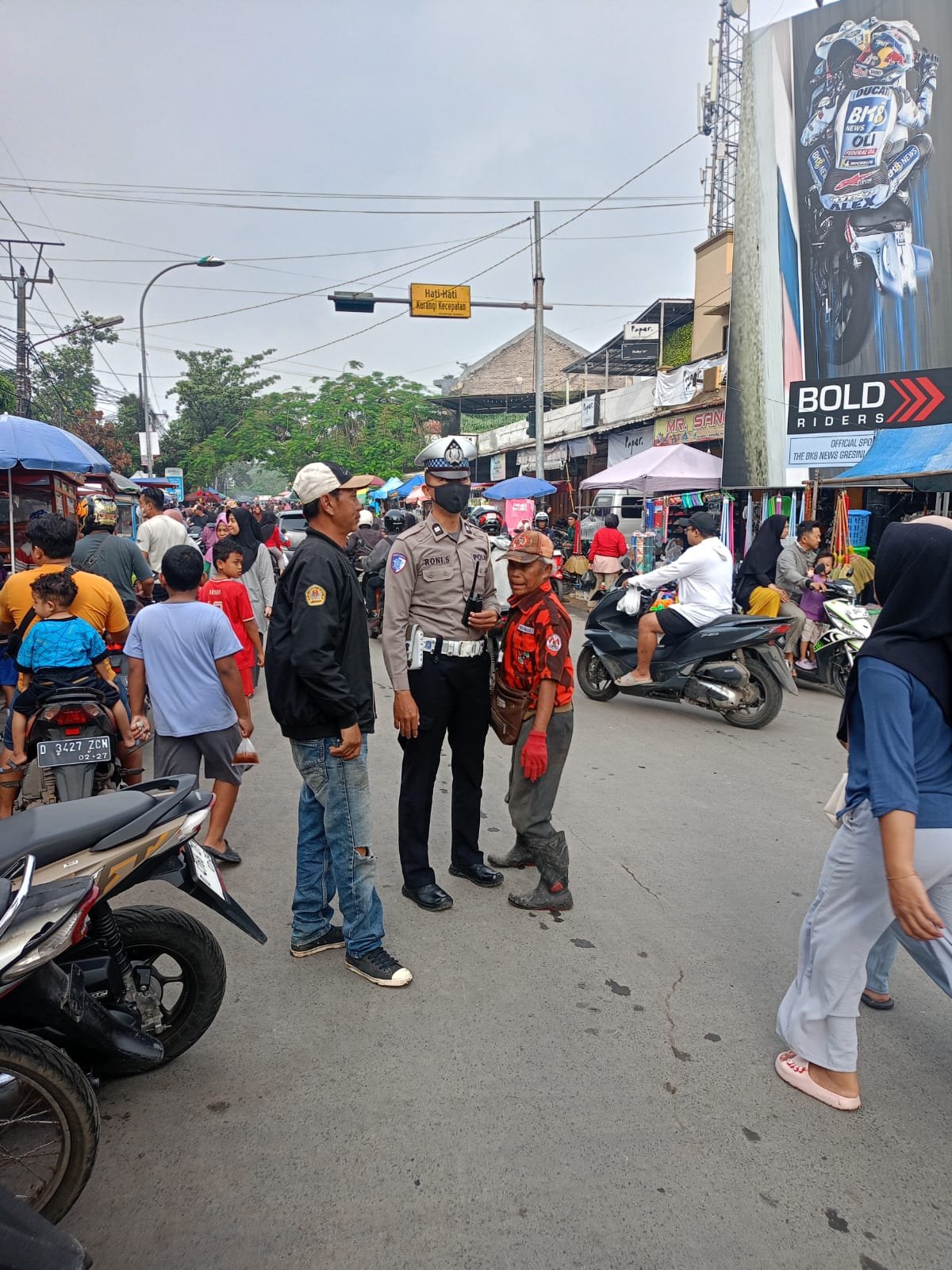 Pelayanan Minggu Pagi, Unit Lantas Polsek Baleendah Lakukan Pengaturan Lalu Lintas di Pasar Tumpah