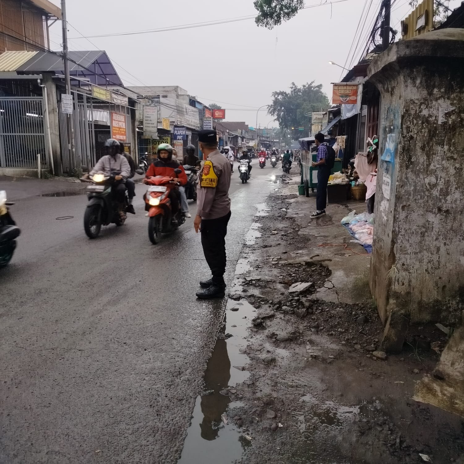 Bhabinkamtibmas Aipda Landi tampak aktif membantu kelancaran arus kendaraan, menyeberangkan pejalan kaki, serta memberikan imbauan kepada pengguna jalan agar selalu tertib dan mengutamakan keselamatan.