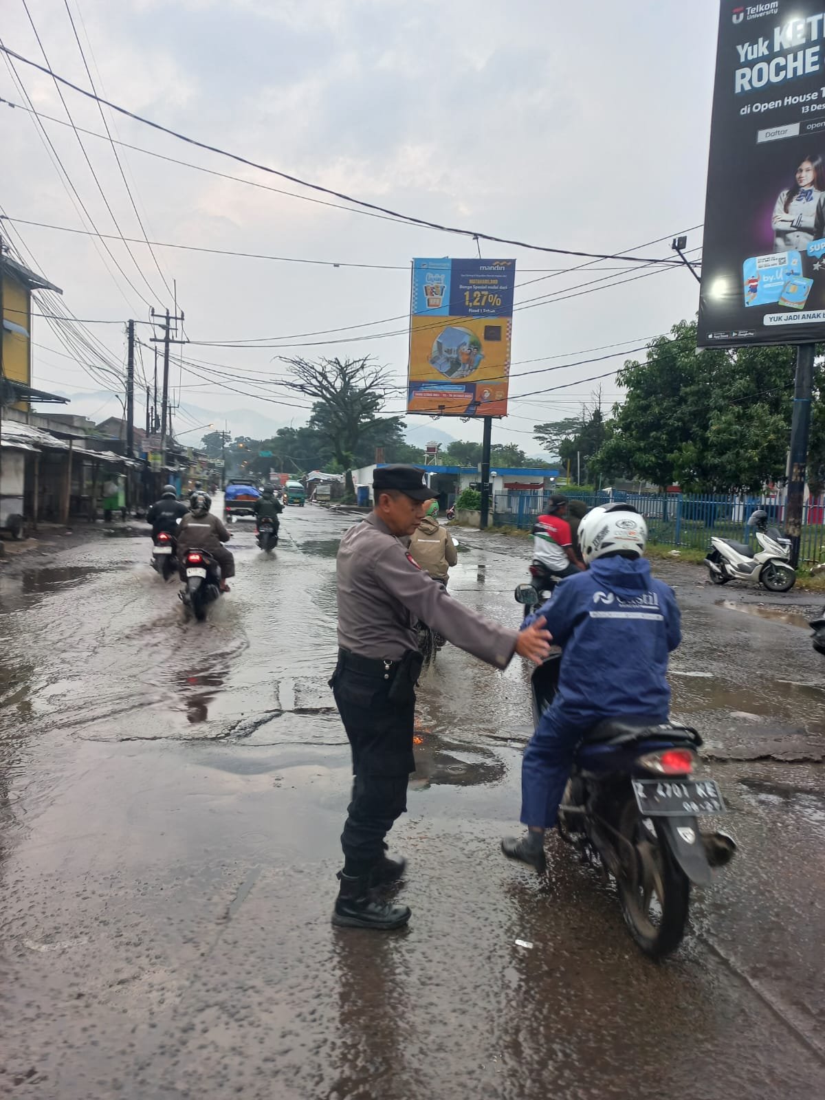 Unit Samapta Polsek Baleendah melaksanakan kegiatan penguatan personel dan pengaturan lalu lintas di pertigaan Andir, Kecamatan Baleendah, Kabupaten Bandung.
