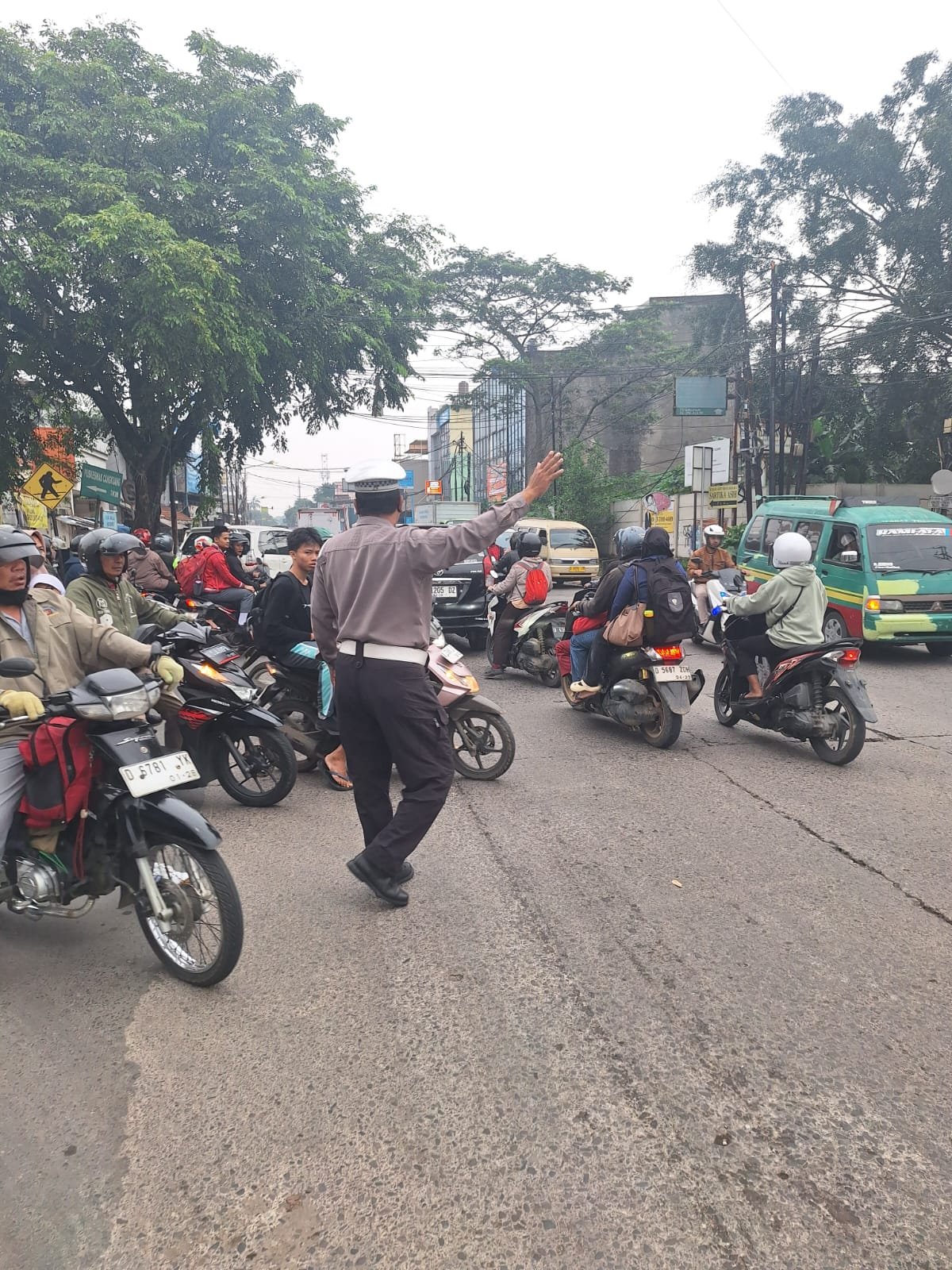 Kegiatan tersebut dilakukan untuk mengantisipasi kepadatan kendaraan yang kerap terjadi pada jam sibuk pagi hari, khususnya saat arus masyarakat mulai beraktivitas menuju tempat kerja maupun sekolah.